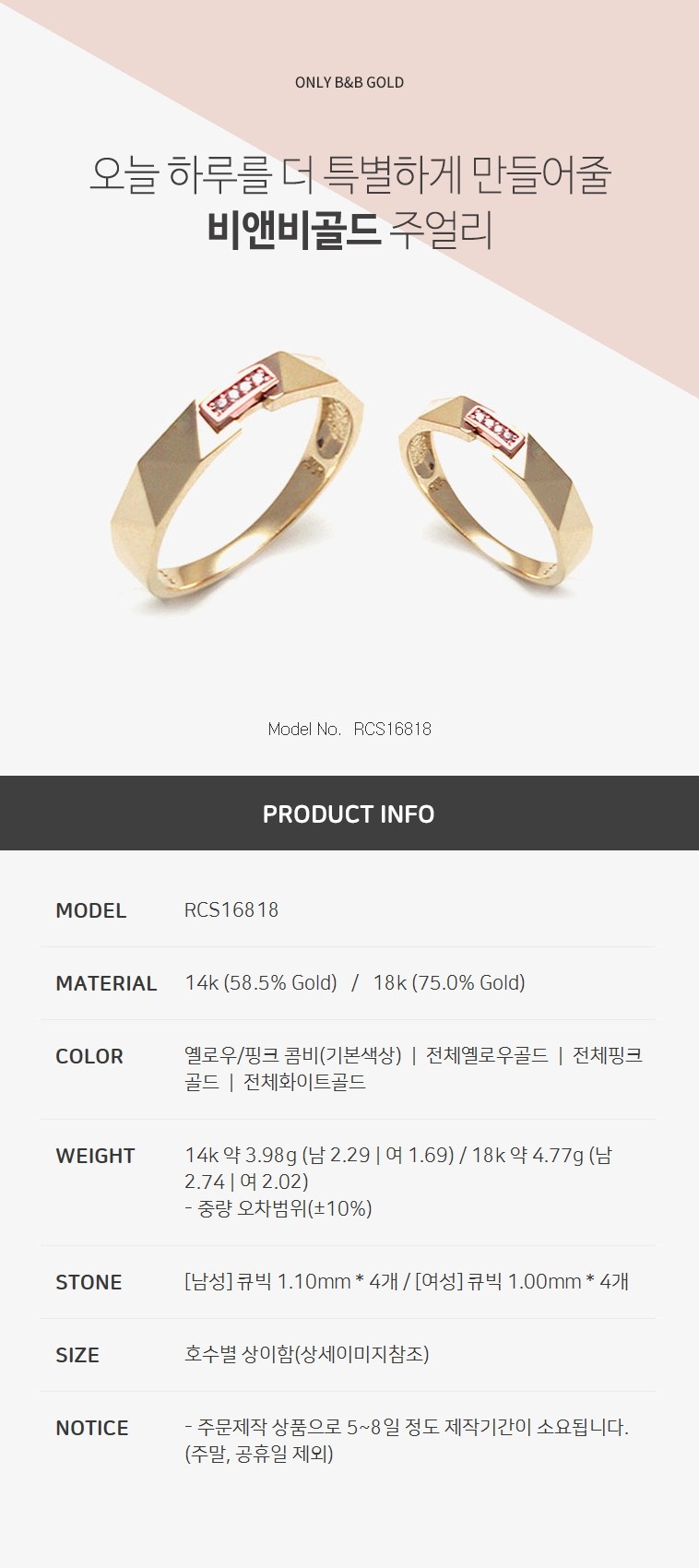 14K 콤비 한쌍커플링 RCS16818 (반지)