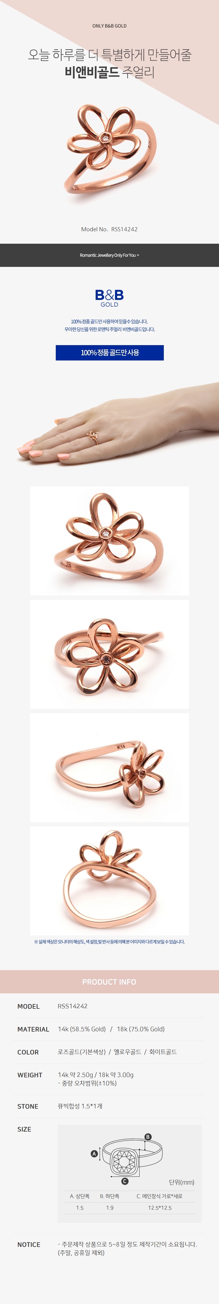 14K반지,금반지,골드반지꽃,원포인트,보통폭,반지,로즈골드