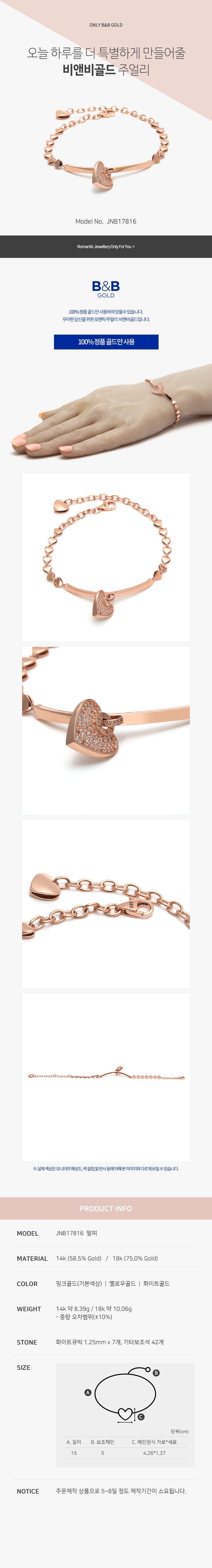 14k 스틱 하트 팔찌 JNB17816 (발찌/팔찌)