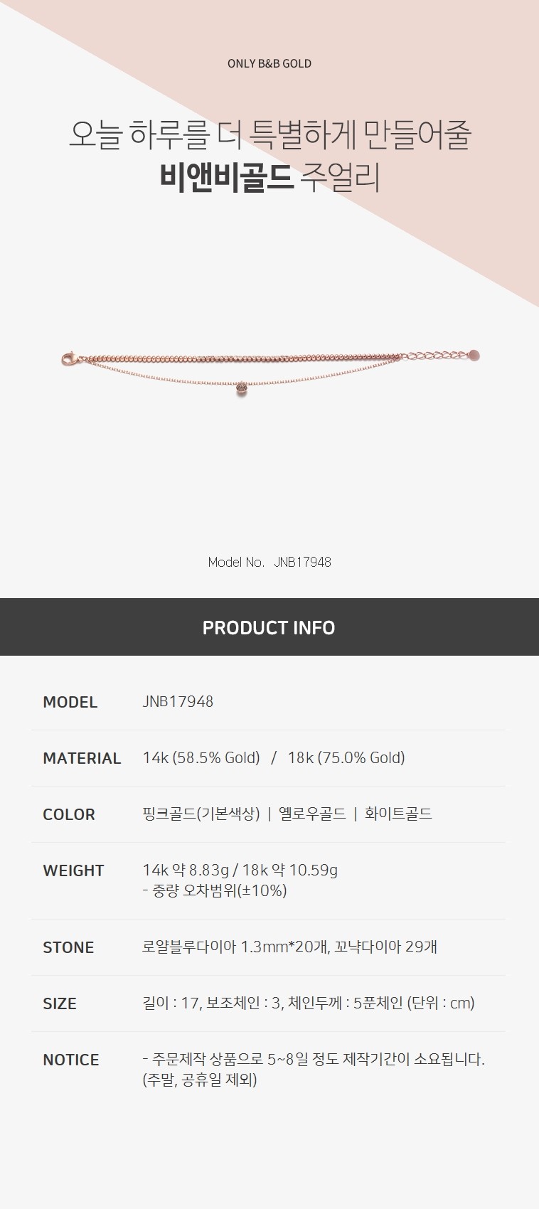 14k 심플 두줄 팔찌 JNB17948 (발찌/팔찌)
