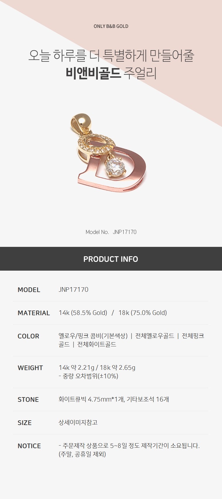14k D 심플 펜던트 JNP17170 (목걸이/펜던트/건강목걸이)