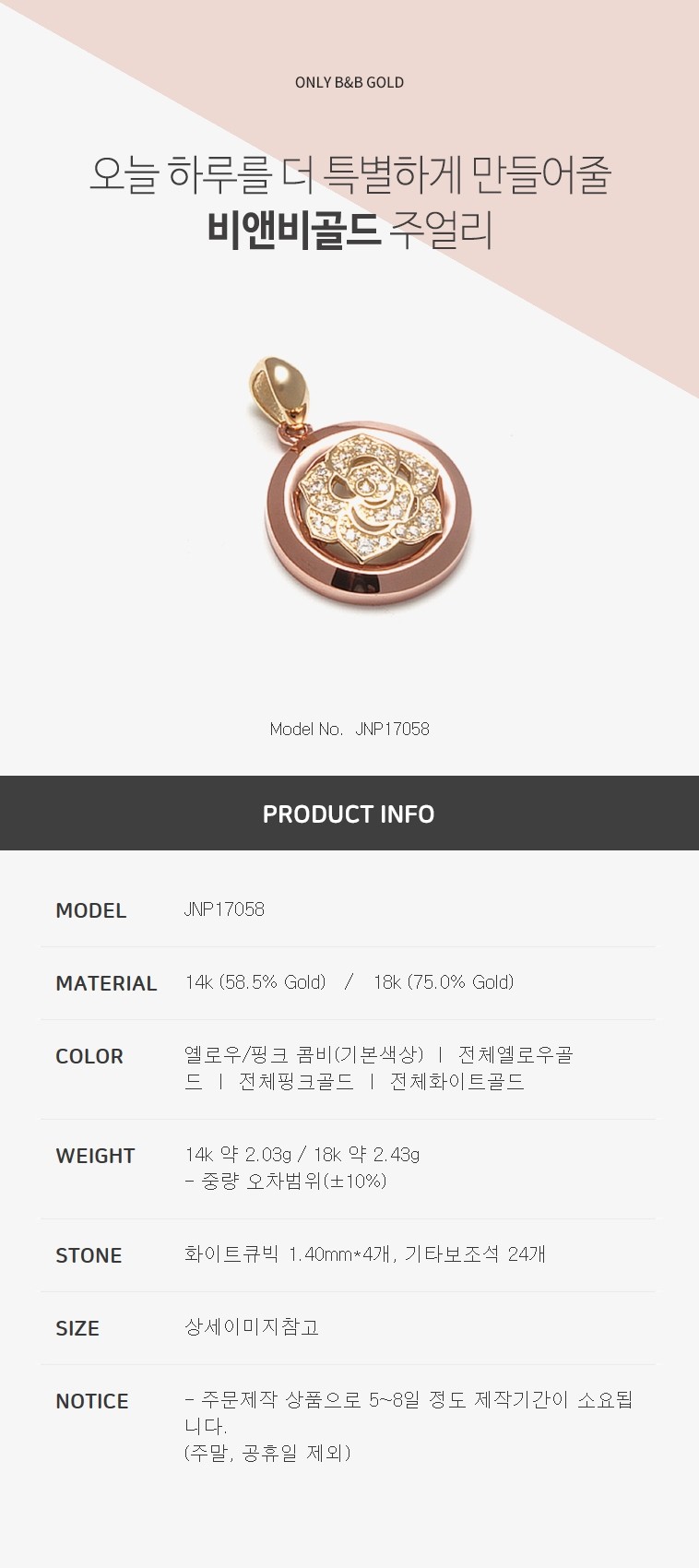 14k 서클 로즈 펜던트 JNP17058 (목걸이/펜던트/건강목걸이)