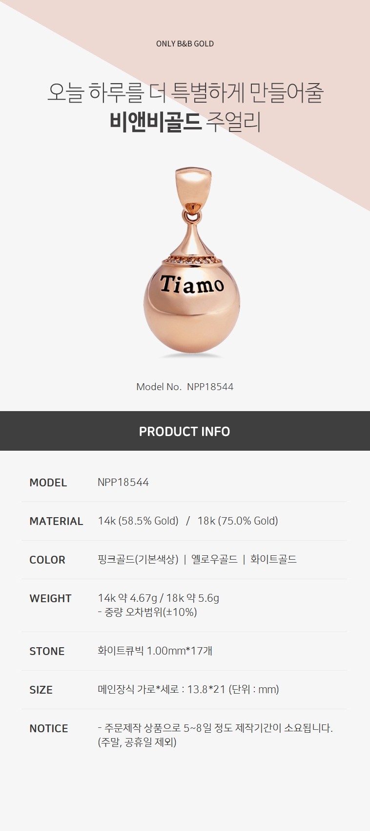14k 물방울 티아모 펜던트 NPP18544 (목걸이/펜던트/건강목걸이)