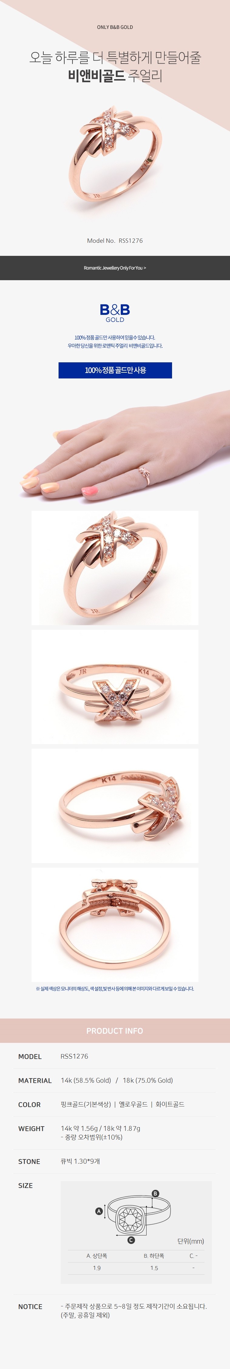 14K GOLD 반지 X 핑크골드링 여성금반지 RSS1276 14k반지 (반지)