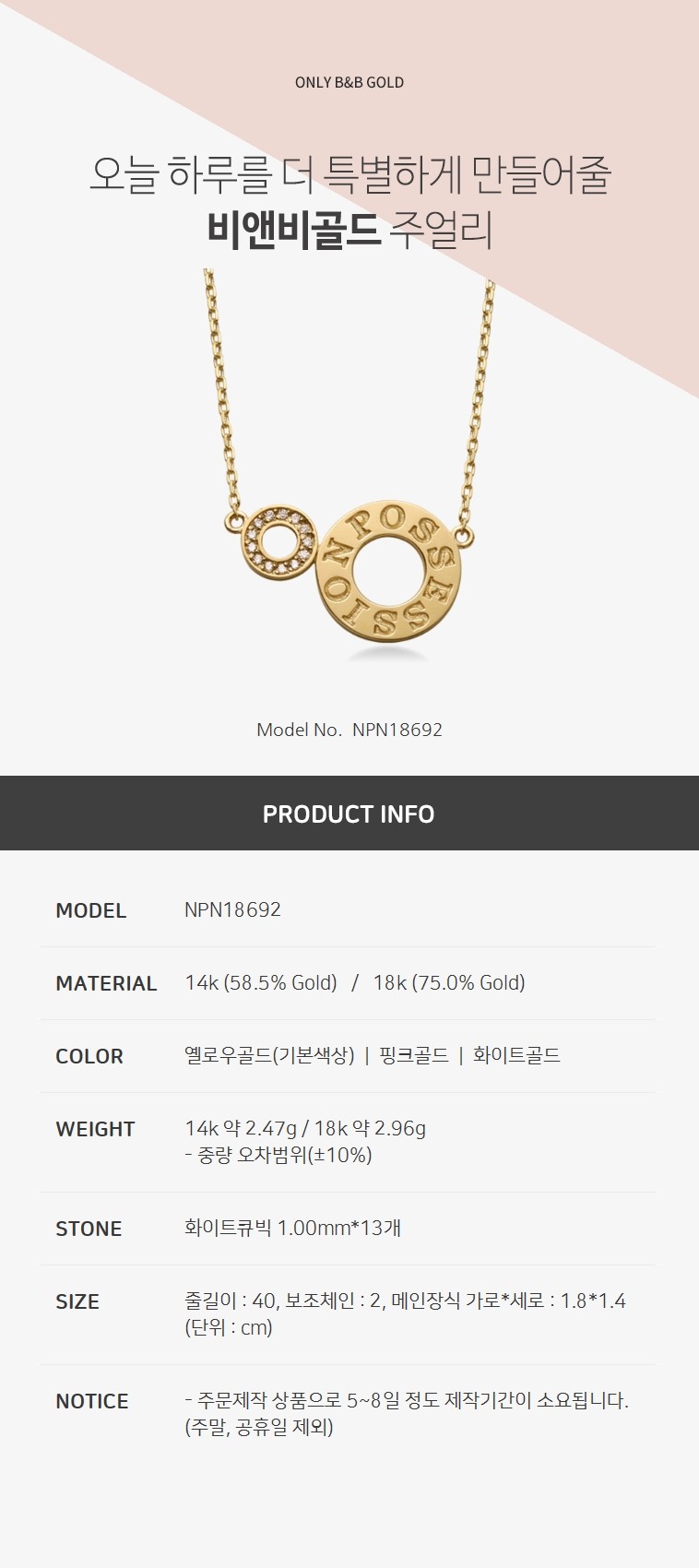 14k 더블 서클 포지션 목걸이 NPN18692 (목걸이/펜던트/건강목걸이)