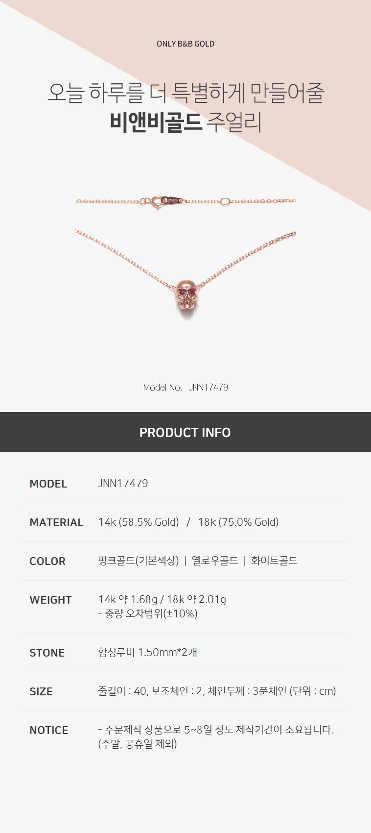 14k 루비 스컬 목걸이 JNN17479 (목걸이/펜던트/건강목걸이)