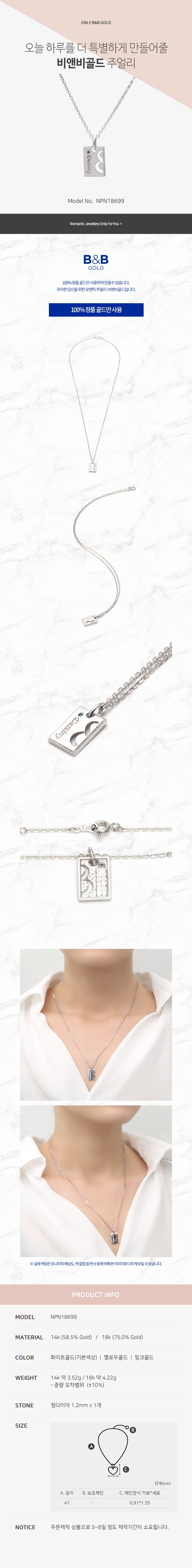 14k 사각 데스티니 목걸이 NPN18699 (목걸이/펜던트/건강목걸이)