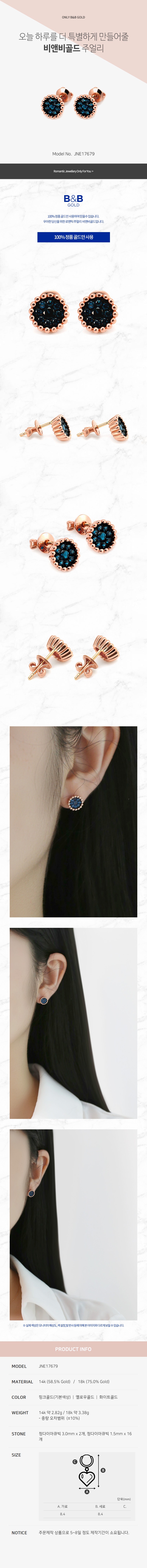 14k 심플 청다이아 원형 귀걸이 JNE17679 (귀걸이)