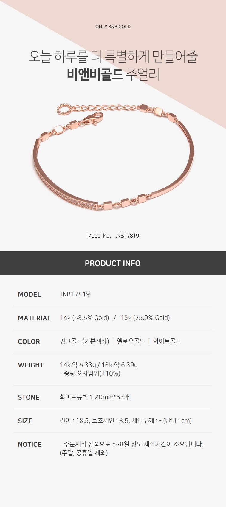14k 사각 스틱 팔찌 JNB17819 (발찌/팔찌)