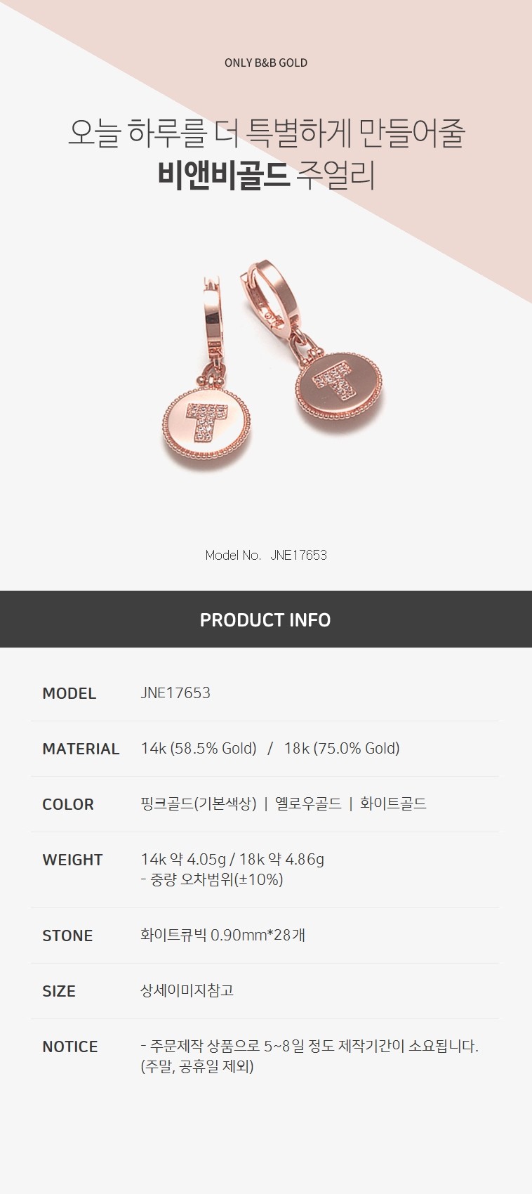 14k T 원형 귀걸이 JNE17653 (귀걸이)