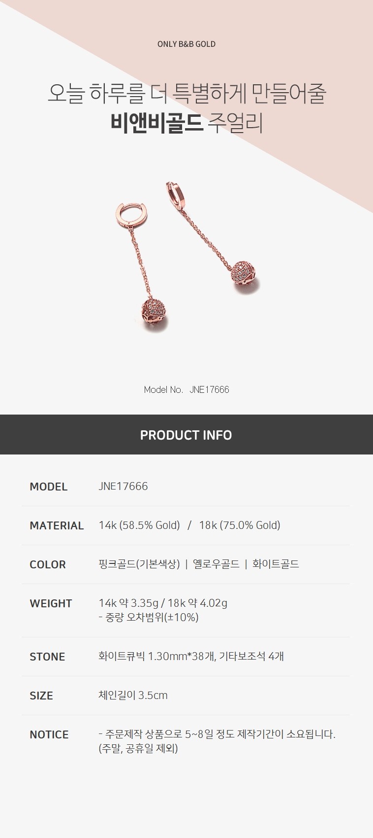 14k 드롭체인 볼 귀걸이 JNE17666 (귀걸이)