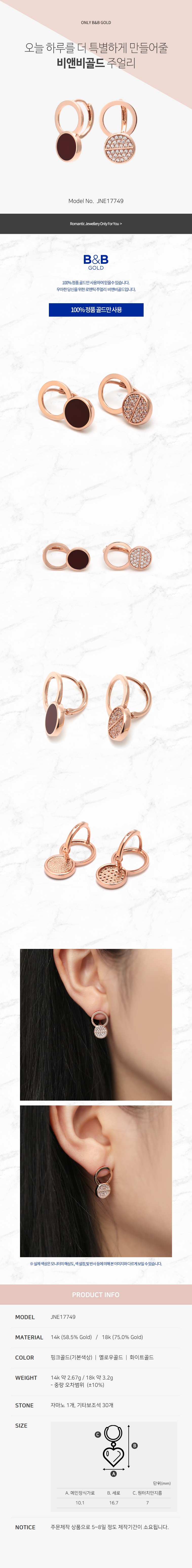 14k 자마노 언발 귀걸이 JNE17749 (귀걸이)