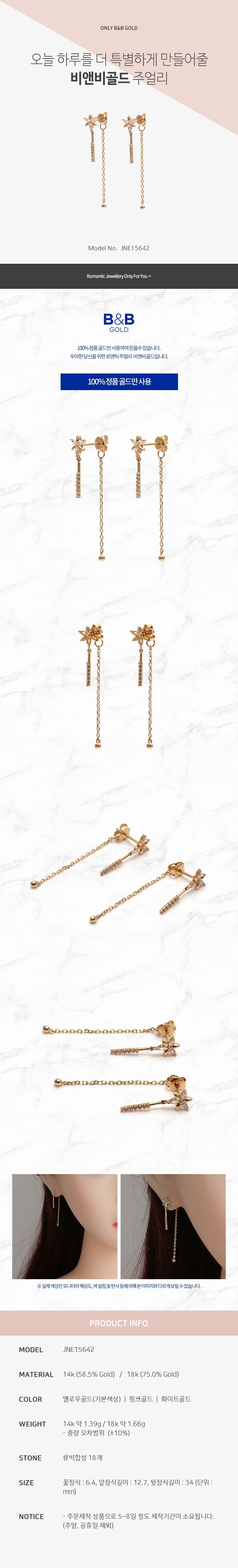 14k 플라워 드롭 귀걸이 JNE15642 (귀걸이)