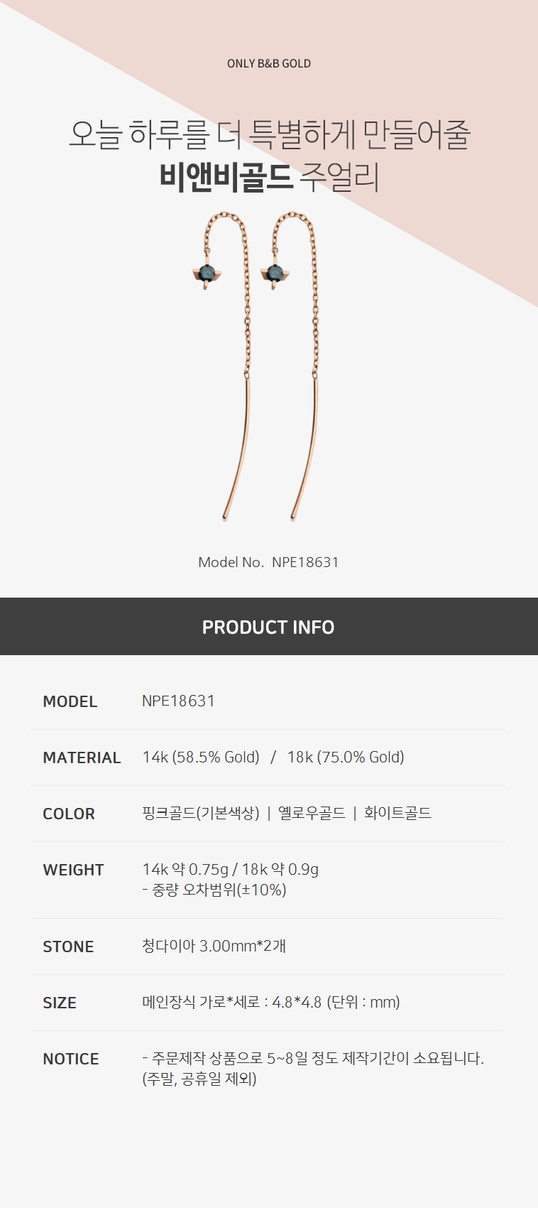 14k 청다이아 드롭체인 스틱 귀걸이 NPE18631 (귀걸이)