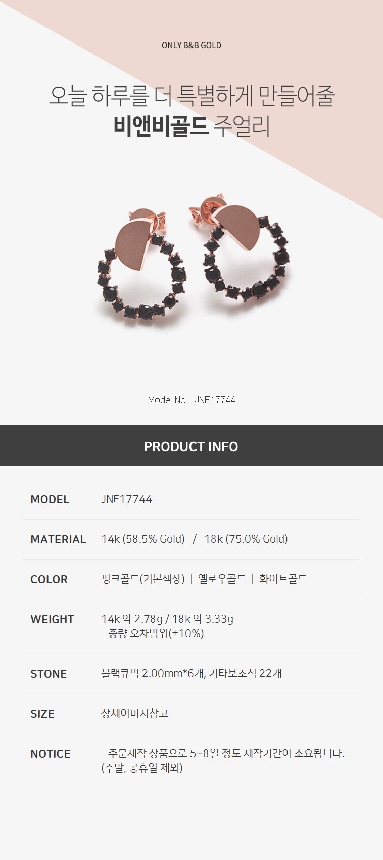 14k 블랙 큐빅 핀 귀걸이 JNE17744 (귀걸이)