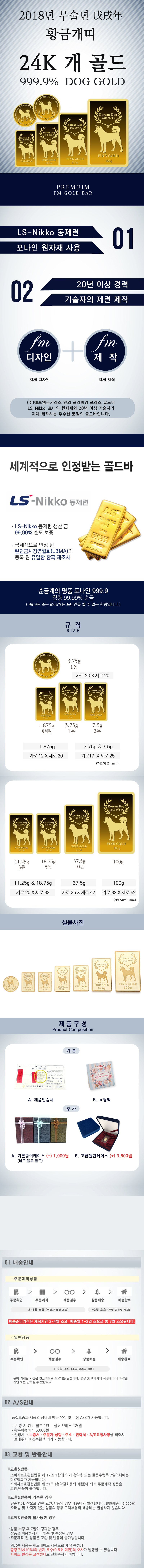 2018황금개띠 24K순금 골드바(7.5g)/999.9% (세트상품)
