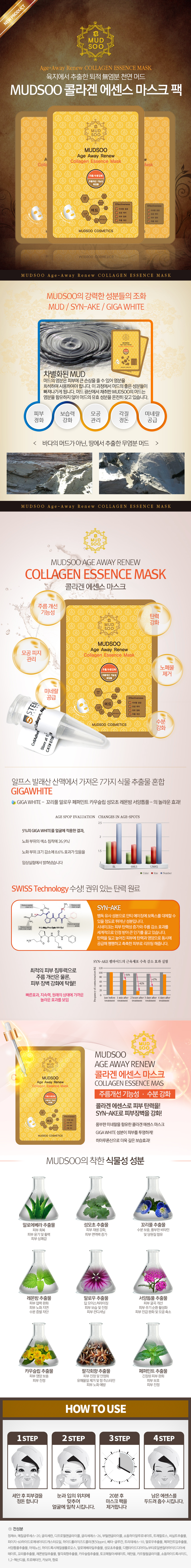 MUDSOO 에이지 어웨이 리뉴 콜라겐 마스크팩 10EA 머드수 (마사지/마스크/팩)