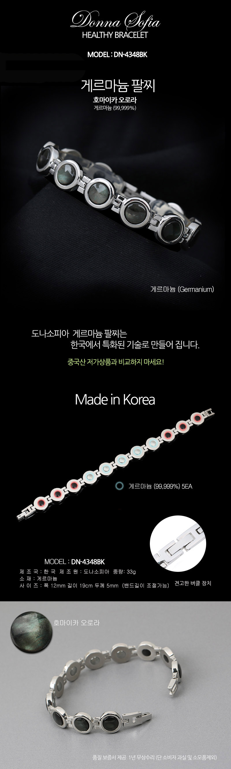 {도나소피아} 게르마늄 건강 팔찌 DN-4348BK (발찌/팔찌)