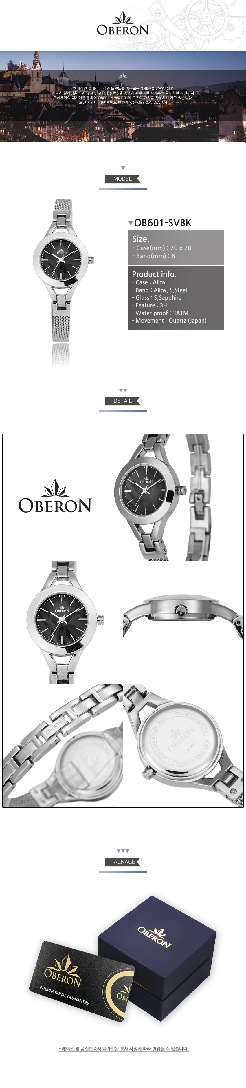 {공식정품} 오베론 손목 시계 OB-601SVBK / OBERON (여성시계)