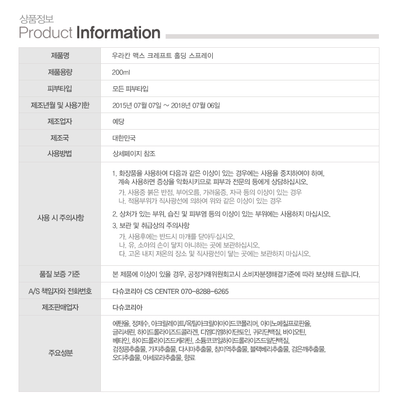 [우라칸] 크래프트 홀딩 스프레이 (헤어스타일링/에센스)