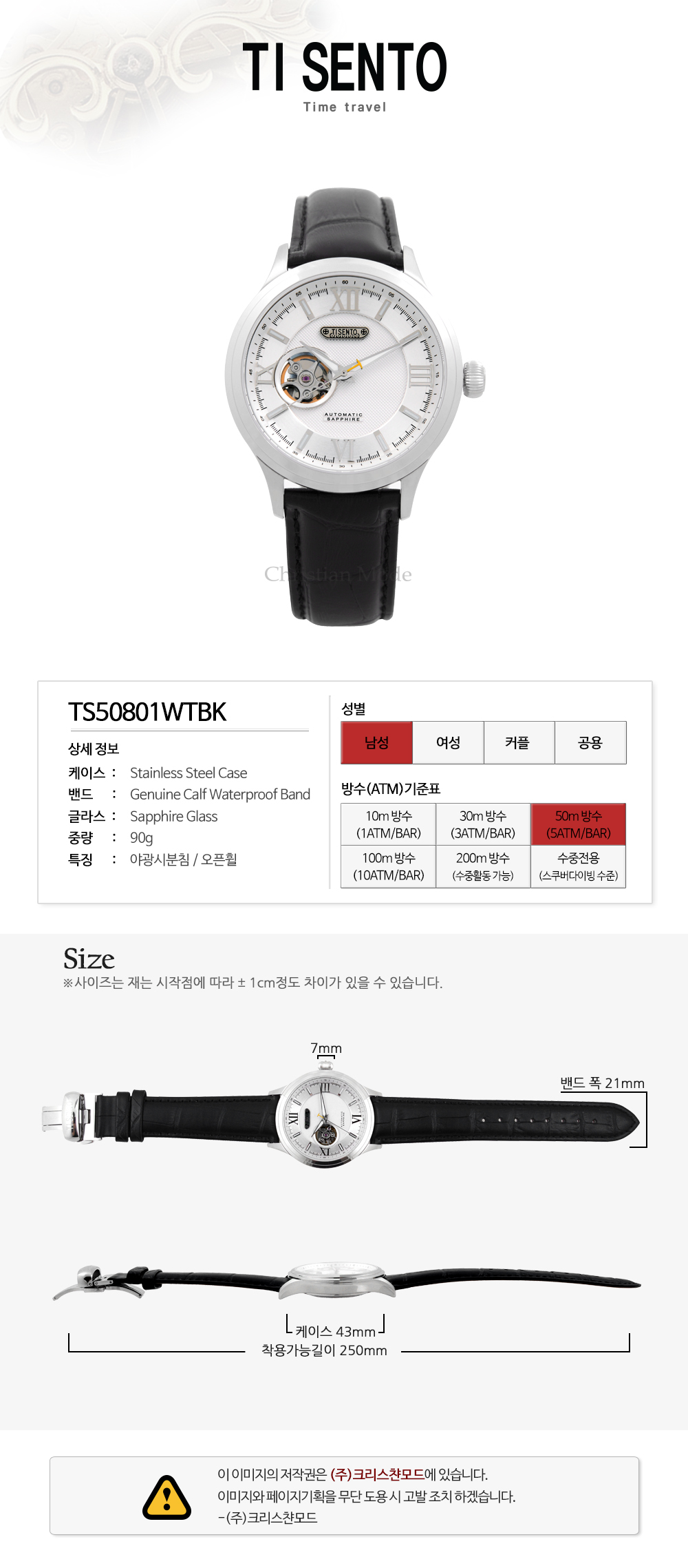 {한국본사정품} TS50801WTBK 티센토 남성 손목 시계 (남성시계)