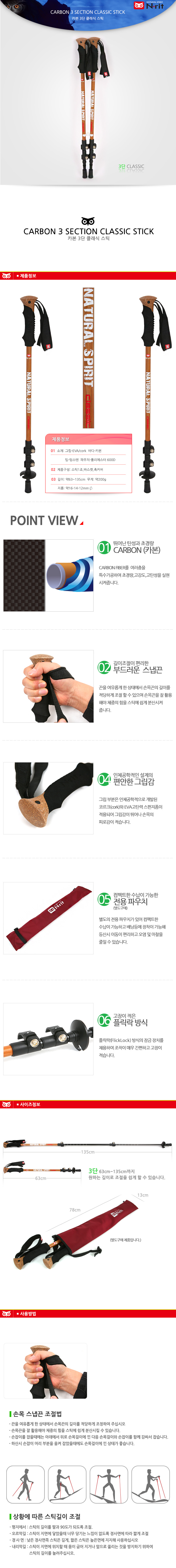 [엔릿 N-rit] 카본 3단 클래식 스틱(2개 1조) NTPD404 (캠핑용품/잡화)