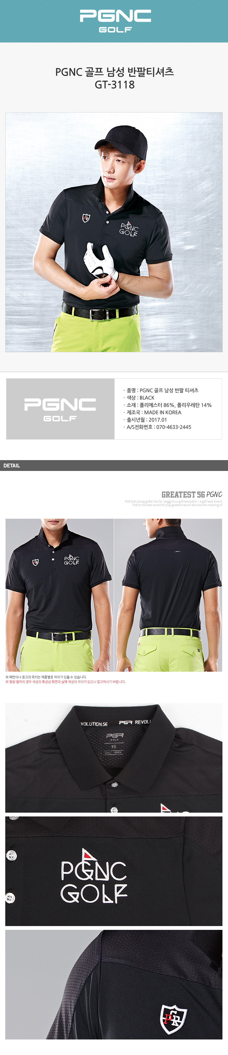 PGNC 골프 남성 반팔 티셔츠GT-3118 (남성의류)