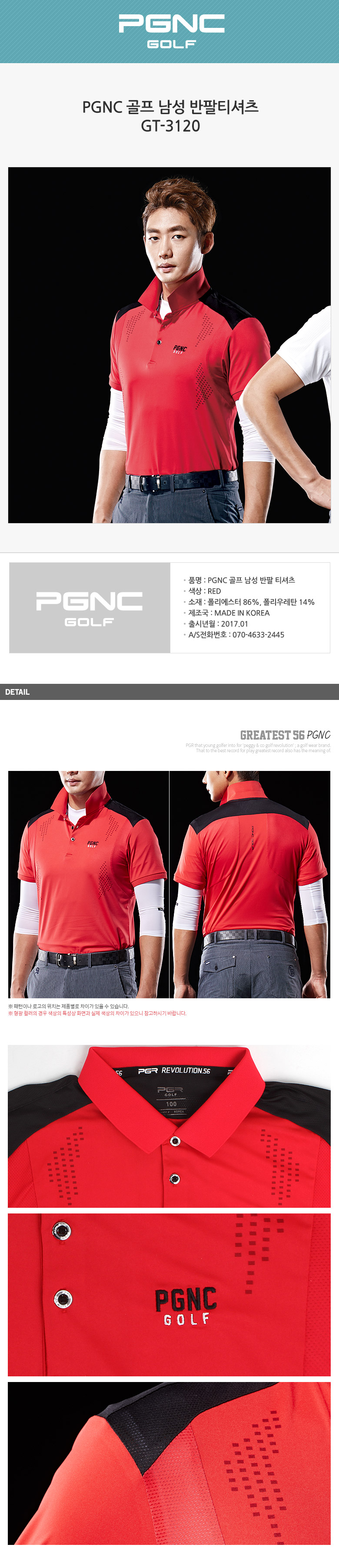 PGNC 골프 남성 반팔 티셔츠GT-3120 (남성의류)