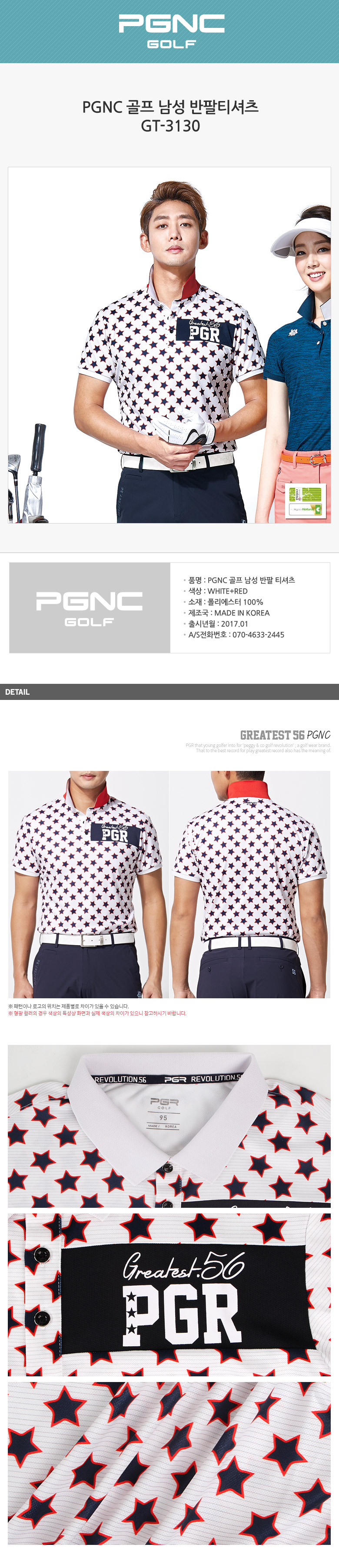 PGNC 골프 남성 반팔 티셔츠GT-3130 (남성의류)