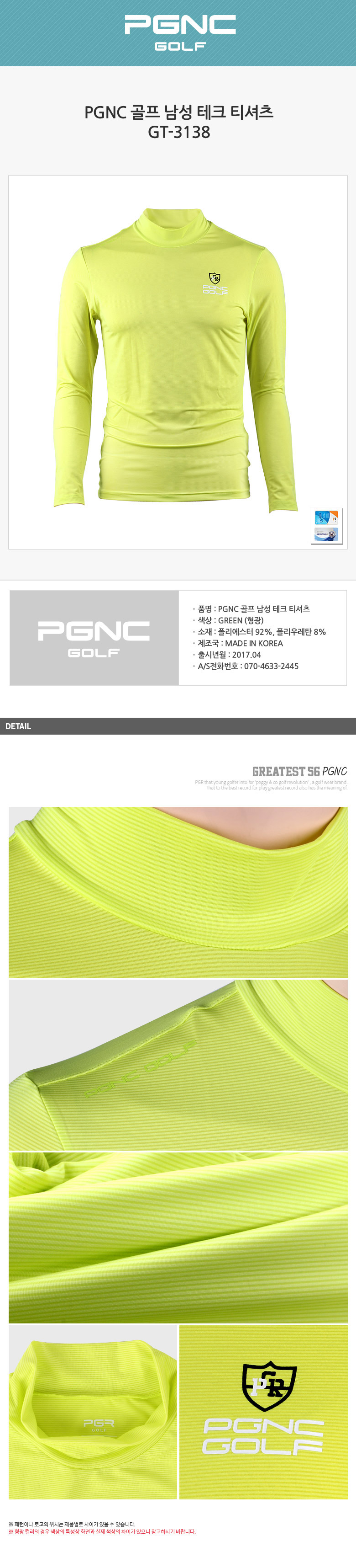 PGNC 골프 남성 긴팔 티셔츠GT-3138 (남성의류)