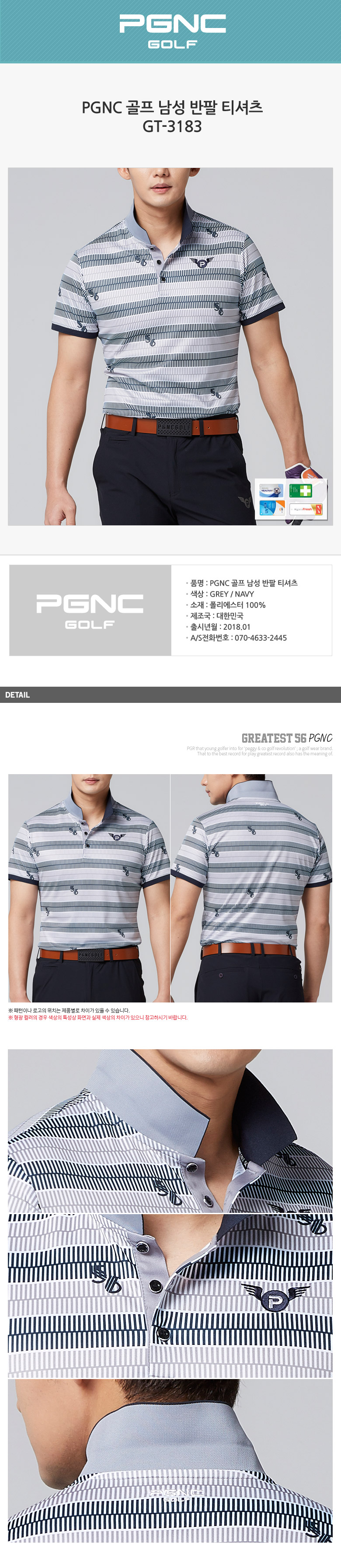 PGNC 골프 남성 반팔 티셔츠GT-3183 (남성의류)