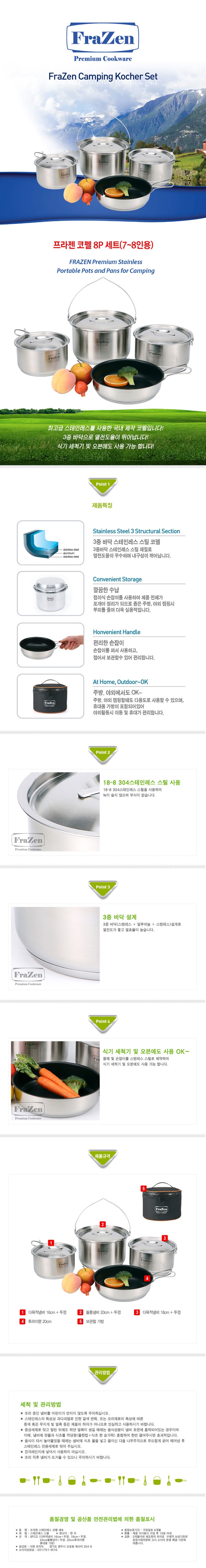[프라젠] 프리미엄 쿡웨어 코펠 8P 세트(7~8인용) (코펠/버너/토치/컵/물병)