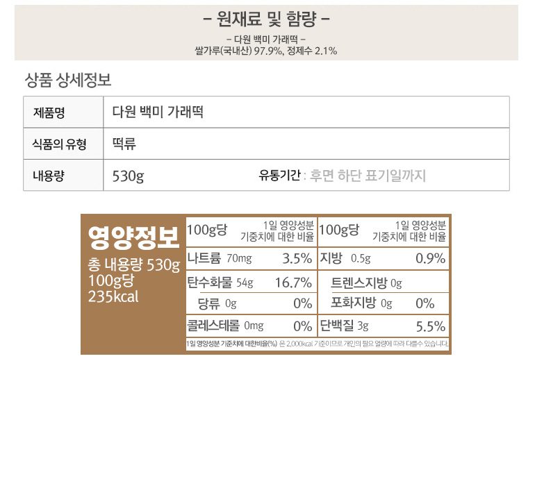 다원웰푸드 시원해야 더 맛있고 쫄깃한 백미 가래떡 530g (떡/한과/한과자/양갱)