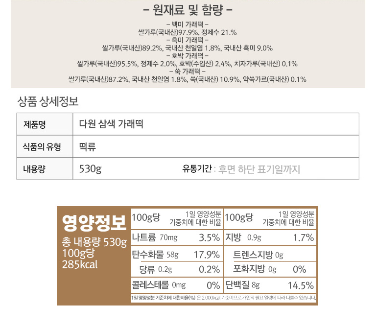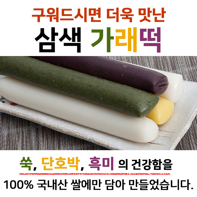 다원웰푸드 시원해야 더 맛있고 쫄깃한 삼색 가래떡 530g (떡/한과/한과자/양갱)