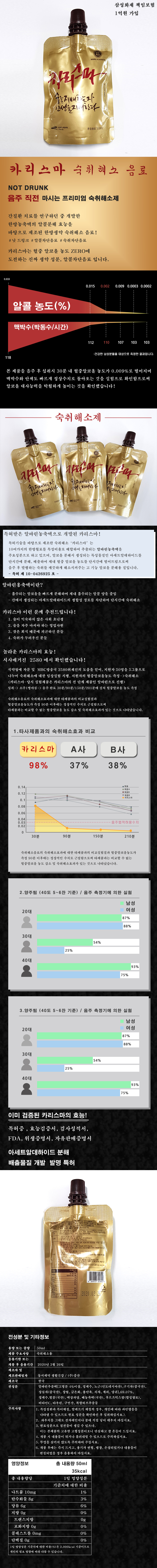 특허받은 카리스마 숙취해소음료 50ml x 1포 - Not Drunk음료, 숙취차단, 숙취해소, 진정한 알콜분해 (숙취해소/자양강장/활명수)