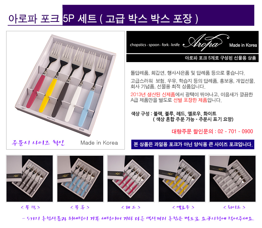 아로파 5P 칼라 포크 세트/박스/홍보용,선물세트,돌답례품,판촉물,특판,보은테크,국산 (수저/양식기)
