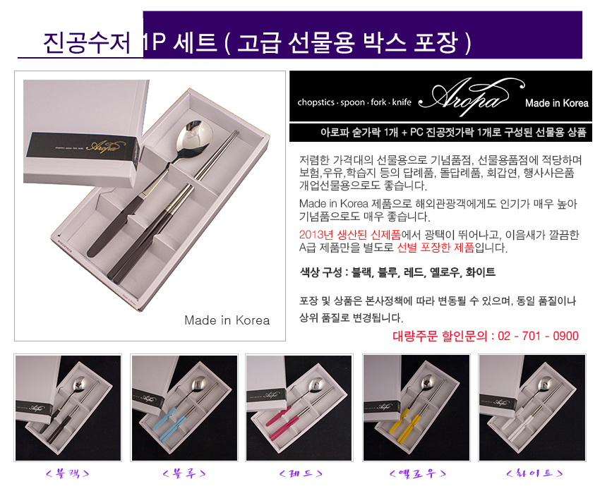아로파 1P 칼라 수저세트/박스포장/젓가락1P+숟가락1P,홍보용,선물세트,돌답례품,판촉물 (수저/양식기)