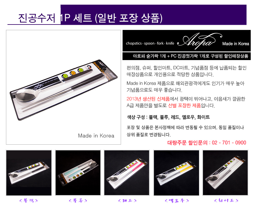 아로파 1P 칼라 수저세트/일반,젓가락1P+숟가락1P,홍보용,선물세트,돌답례품,판촉물 (수저/양식기)
