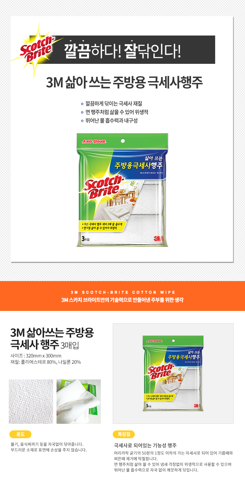 3M스카치브라이트 삶아쓰는 극세사 행주 (3매) (수세미/병솔/잡화)