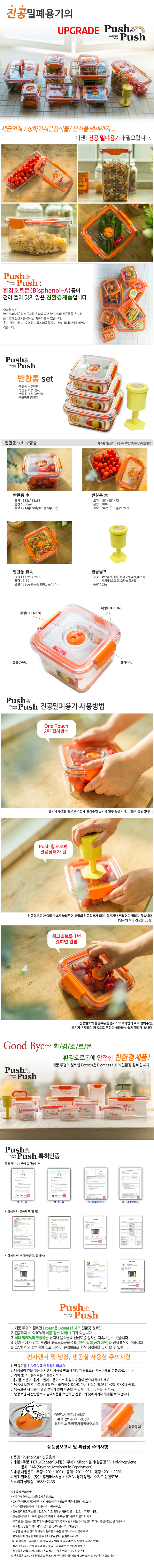 Push&Push 진공용기 반찬통 set (진공용기 3개 + 진공펌프 1개) (보관/밀폐용기)