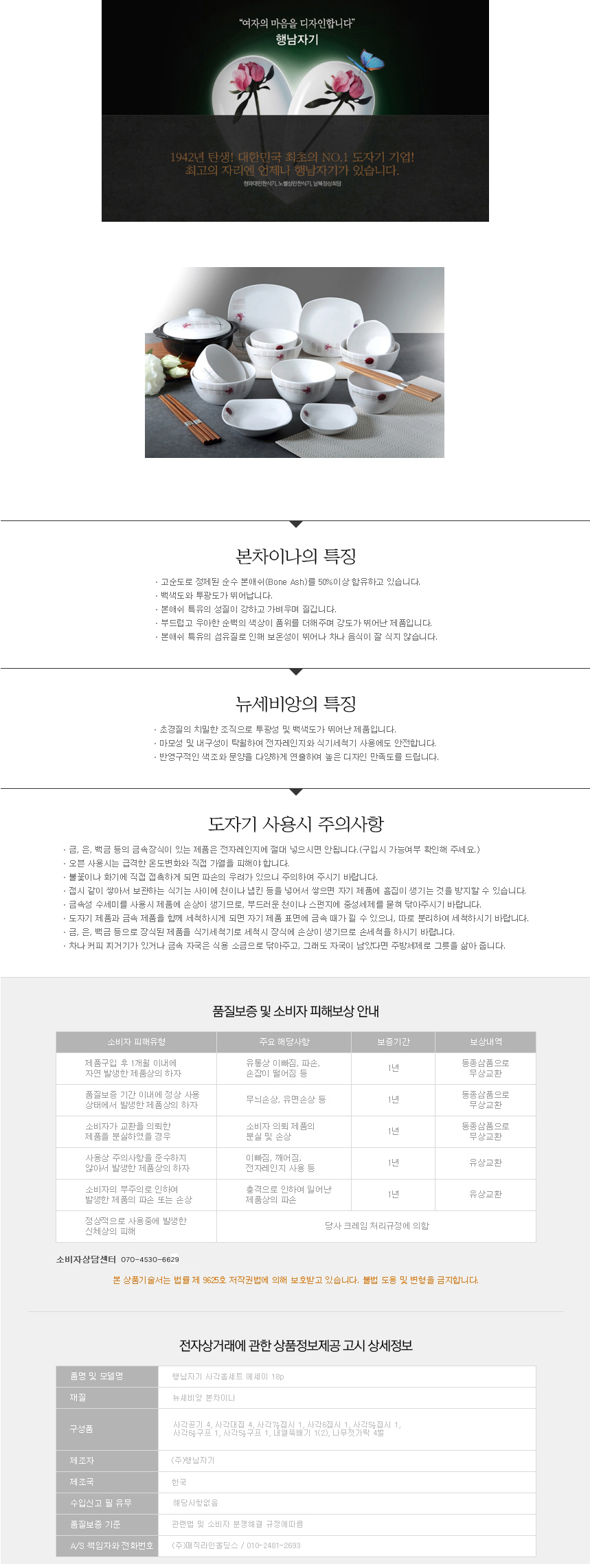행남자기 사각홈세트 에세이 18P (반상기세트)