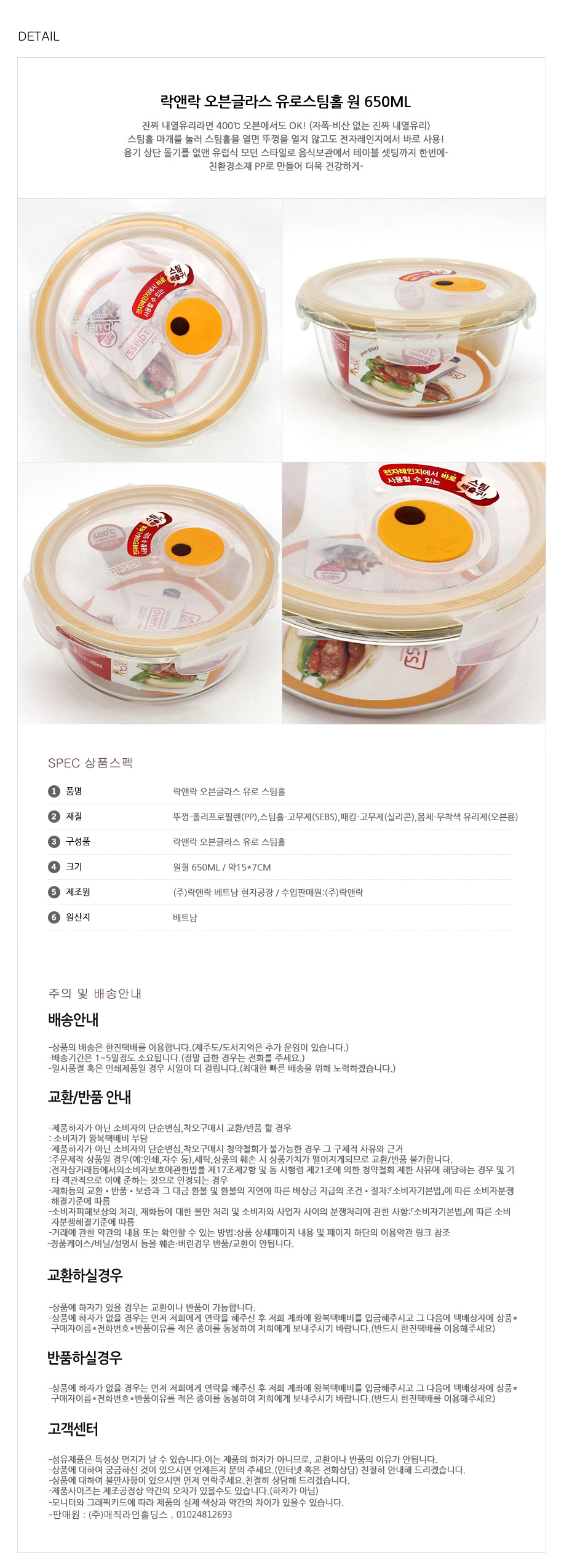 락앤락 오븐글라스 스팀홀(락앤락 스팀홀원형650) (글라스밀폐/유리용기)