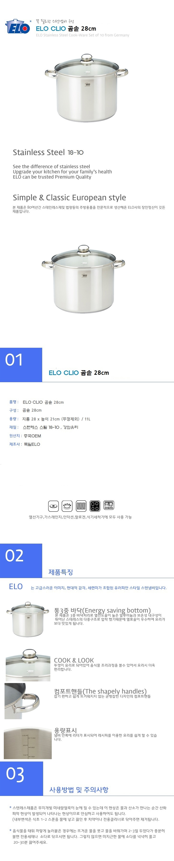 [ELO] CLIO 스텐레스 곰솥 28cm (압력솥/찜솥/스팀쿡/찜기)
