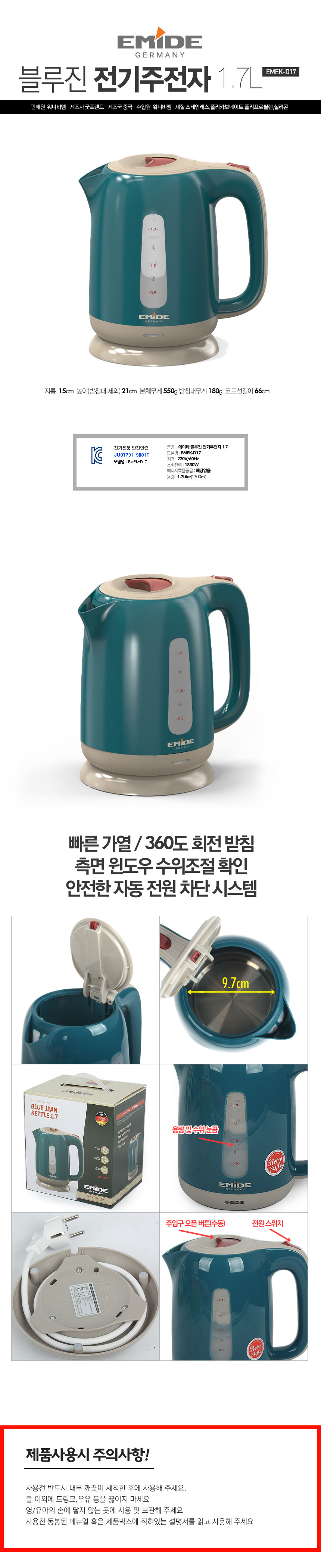 [에미데] 블루진 전기주전자 1.7 (압력솥/찜솥/스팀쿡/찜기)