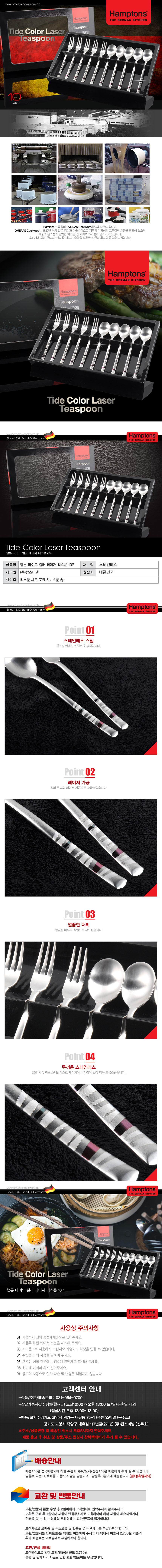 햄튼 타이드 컬러 레이저 티스푼 세트 10P (수저/양식기)