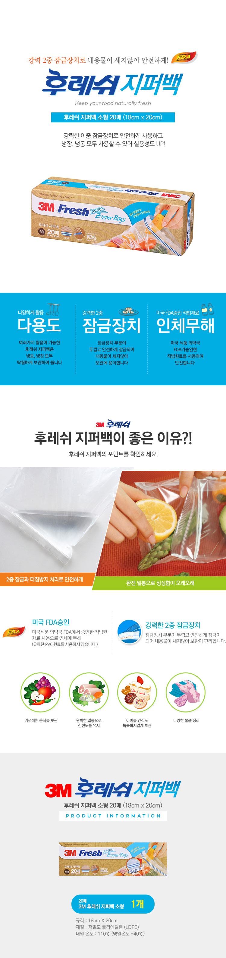 3M 후레쉬 지퍼백 (소) 20매 (랩/백/팩/호일/고무장갑)