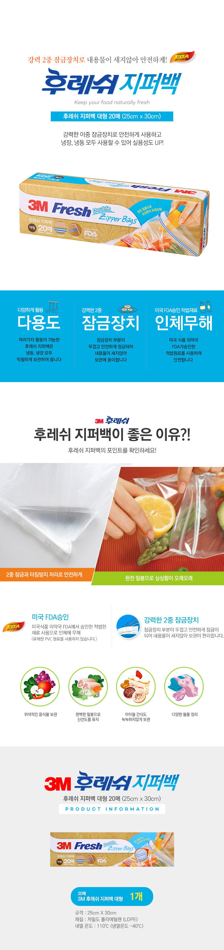 3M 후레쉬 지퍼백 (대) 20매 (랩/백/팩/호일/고무장갑)