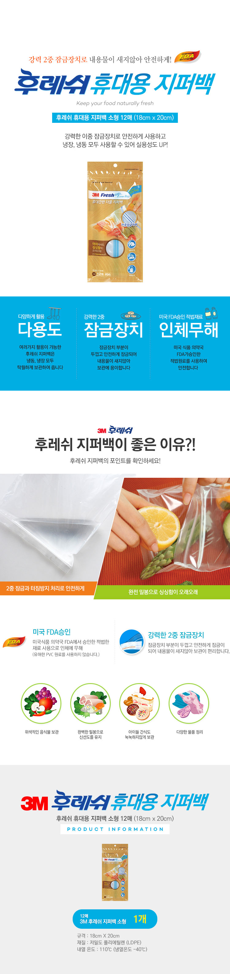 3M 휴대간편 더블지퍼백 소형(12매) (랩/백/팩/호일/고무장갑)