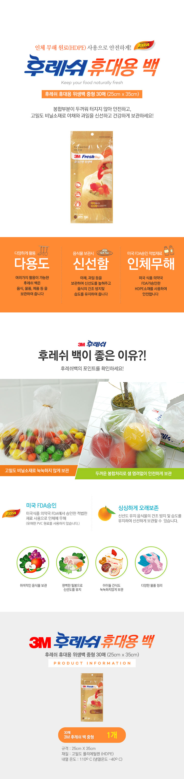 3M 후레쉬 휴대간편 위생백 중형(30매) (랩/백/팩/호일/고무장갑)
