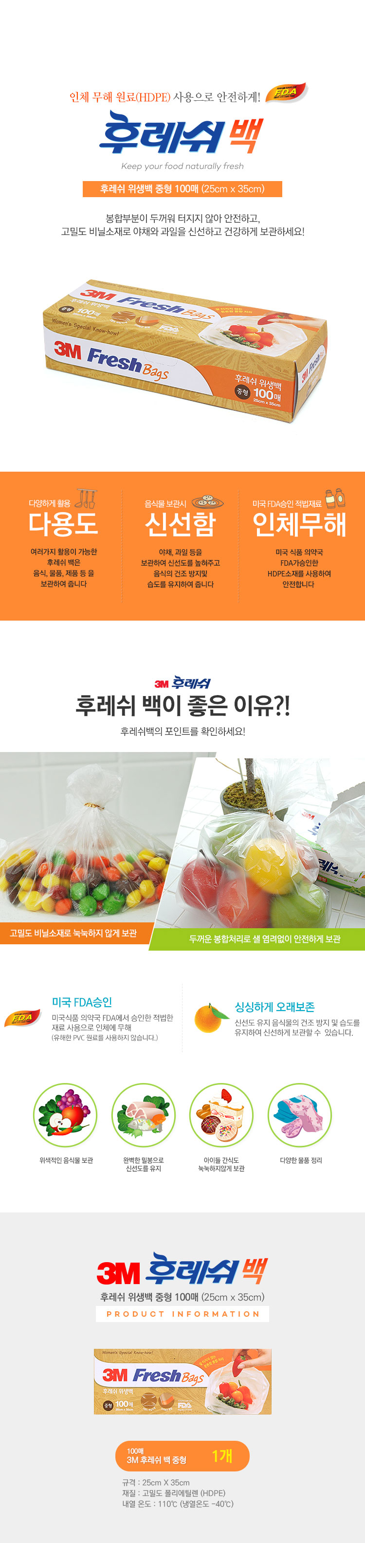 3M 후레쉬 위생백 (중) 100매 (랩/백/팩/호일/고무장갑)